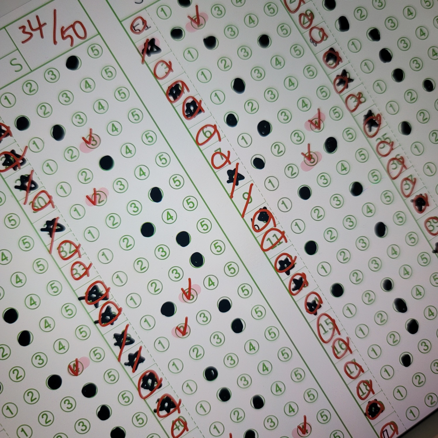 태블릿에 OMR 서식을 두고 체크하며 풀었다.