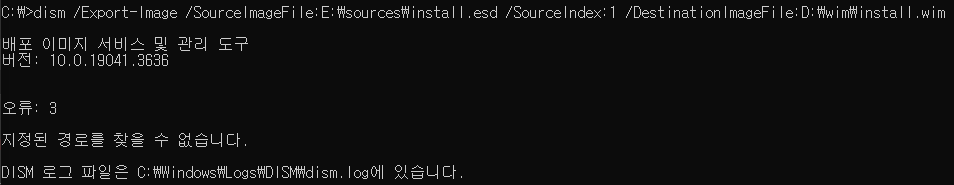 :D:\wim\install.wim 가 아닌 :D:install_wim_temp\wim\install.wim 처럼